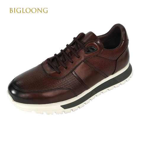 Scarpe sportive Casual da uomo in pelle marrone con suola spessa impermeabile sempreverde e comodo cuscino d'aria ammortizzante-per l'estate