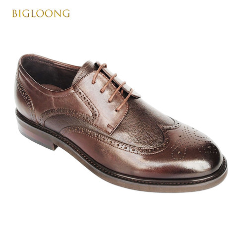 Homens Premium couro Brogue Oxford vestido sapatos marrom clássico com perfurações ornamentais para casamentos
