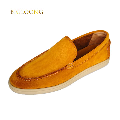 Mocassins de camurça laranja BIGLOONG masculino | Costura marrom Detalhamento | Sola antiderrapante bege | Must-Have Estilo Casual